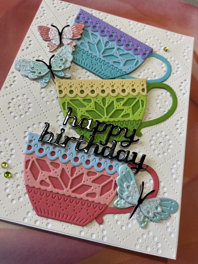 To create this card, I focused on color cardstock and ink blending directly on the diecuts to build dimension and interest. I did not use glitter, mirrored or pearlescent paper that I am always compelled to use. Can you believe it?!